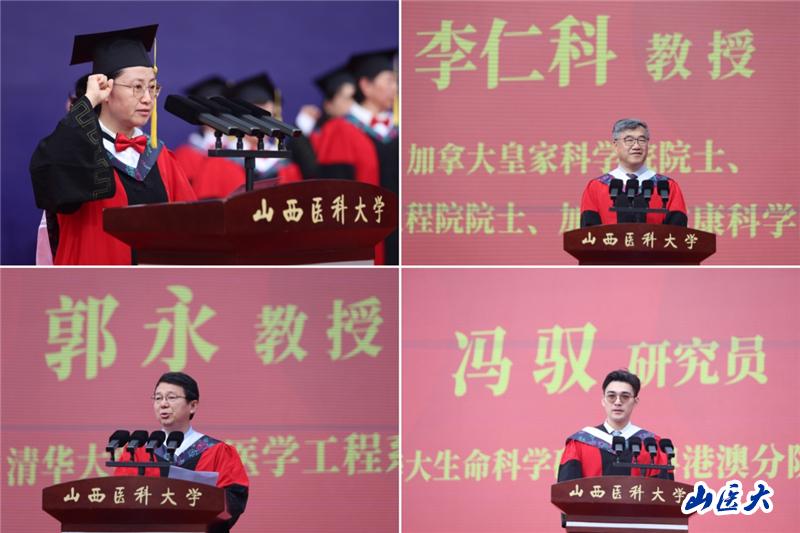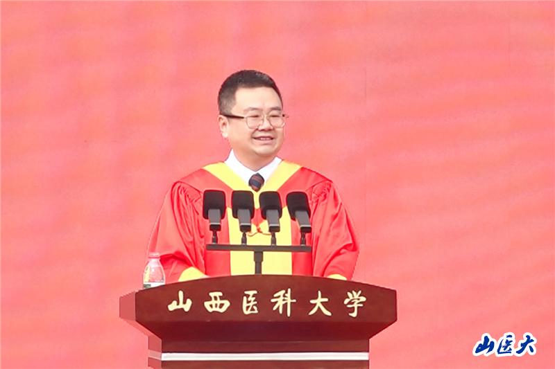 校长解军以“聚灯为炬 守责护民,在人民最需要的地方奋笔书写健康中国新篇章”为题为毕业生们送上深情寄语和美好祝福。他指出,回望来时路,大家同步奋进,共同见证了学校“厚植沃土”的育人硕果、“攀登高峰”的学科荣光、“摘星揽月”的科创辉煌和“勇担使命”的家国情怀。他向毕业生提出三点期望:放眼寰宇,做真理的永恒追光者,永葆对未知世界的好奇与渴望,勇立潮头,探索不息;根植华夏,做时代的无畏答卷人,将个人抱负融入国家需求,以卓越才识破解生命奥秘、用创新担当守护人民健康;心系母校,做山医辉煌的共建者,用实际行动汇聚推动山医这座百年医学殿堂破浪前行的磅礴动力。