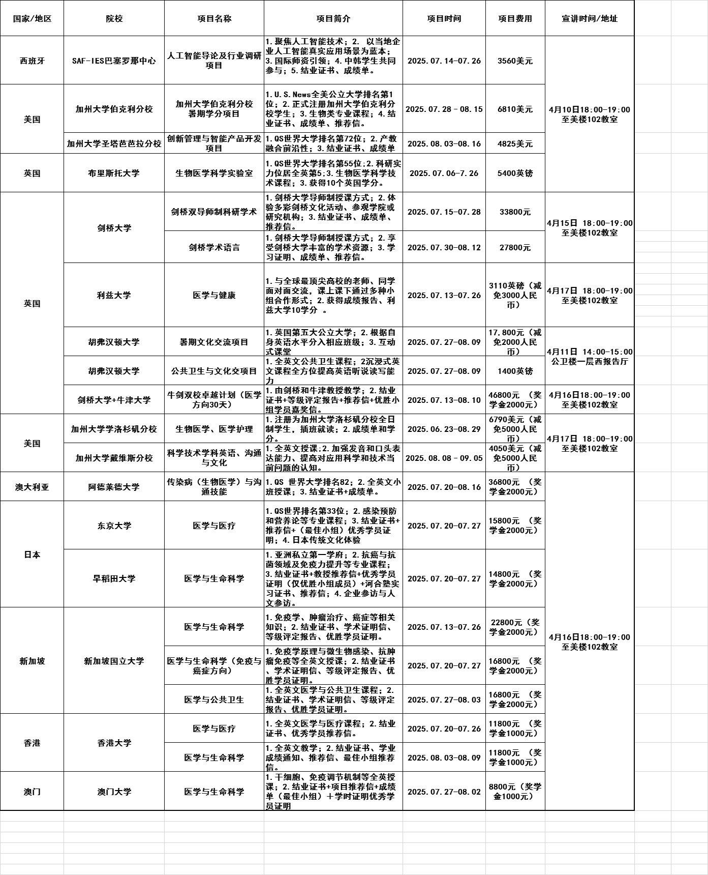 关于2025年暑假学生出国(境)短期访学项目报名的通知