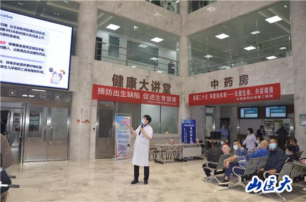 第二医院妇产科党支部书记、副主任王永红利用大屏幕进行了主题宣教,就出生缺陷防治、产前筛查、婚前健康检查、孕前优生健康检查等出生缺陷防治知识,指导群众孕期规范产检,孕中期进行免费产前筛查,引导和动员群众关注并参与到出生缺陷防治工作中。