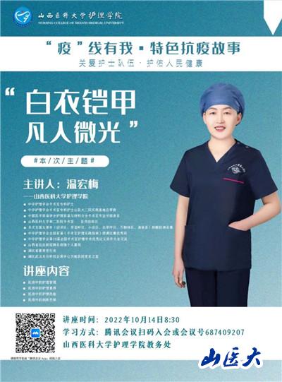 为帮助2022级新生认识专业特色,明确发展方向,护理学院在入学教育的基础上,推出线上专业教育——抗疫故事系列讲座,共包含“抗疫中的护理管理、护理素养、护理技能与创新思维”四大模块。