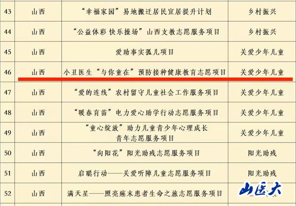 第六届中国青年志愿服务项目大赛共1199个项目参加初评,评选出优秀项目1000个,其中山西省共有26个项目参赛,最终20个项目入围优秀项目。
