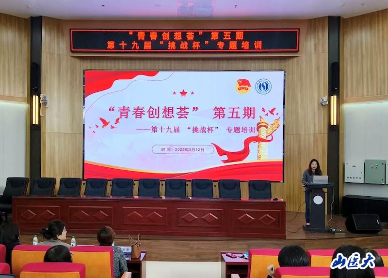 3月12日下午,由校团委主办、公共卫生学院承办的“青春创想荟”第五期——第十九届“挑战杯”专题培训在杏林学生社区开讲。本次讲座由中北大学校团委实践部部长王彩萍主讲,校团委挂职副书记张海燕、公共卫生学院党委副书记蔚钰琼出席,学院分团委书记、暖煦楼A栋功能性团支部书记张瑾主持,来自各学院的200余名学生现场聆听了讲座。