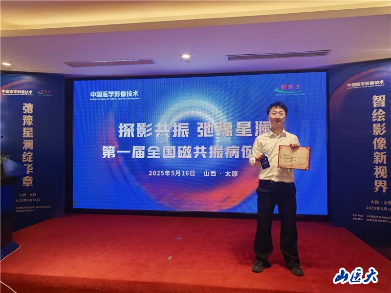 5月16日,“探影共振 弛豫星澜”第一届全国磁共振病例大赛决赛在太原市举办,医学影像学院青年教师侯恒凭借“低成本高精度——1.5T MRI颞下颌关节高分辨成像新突破”,从全国12支决赛队伍中脱颖而出,荣获技术组“巧技良医”二等奖。