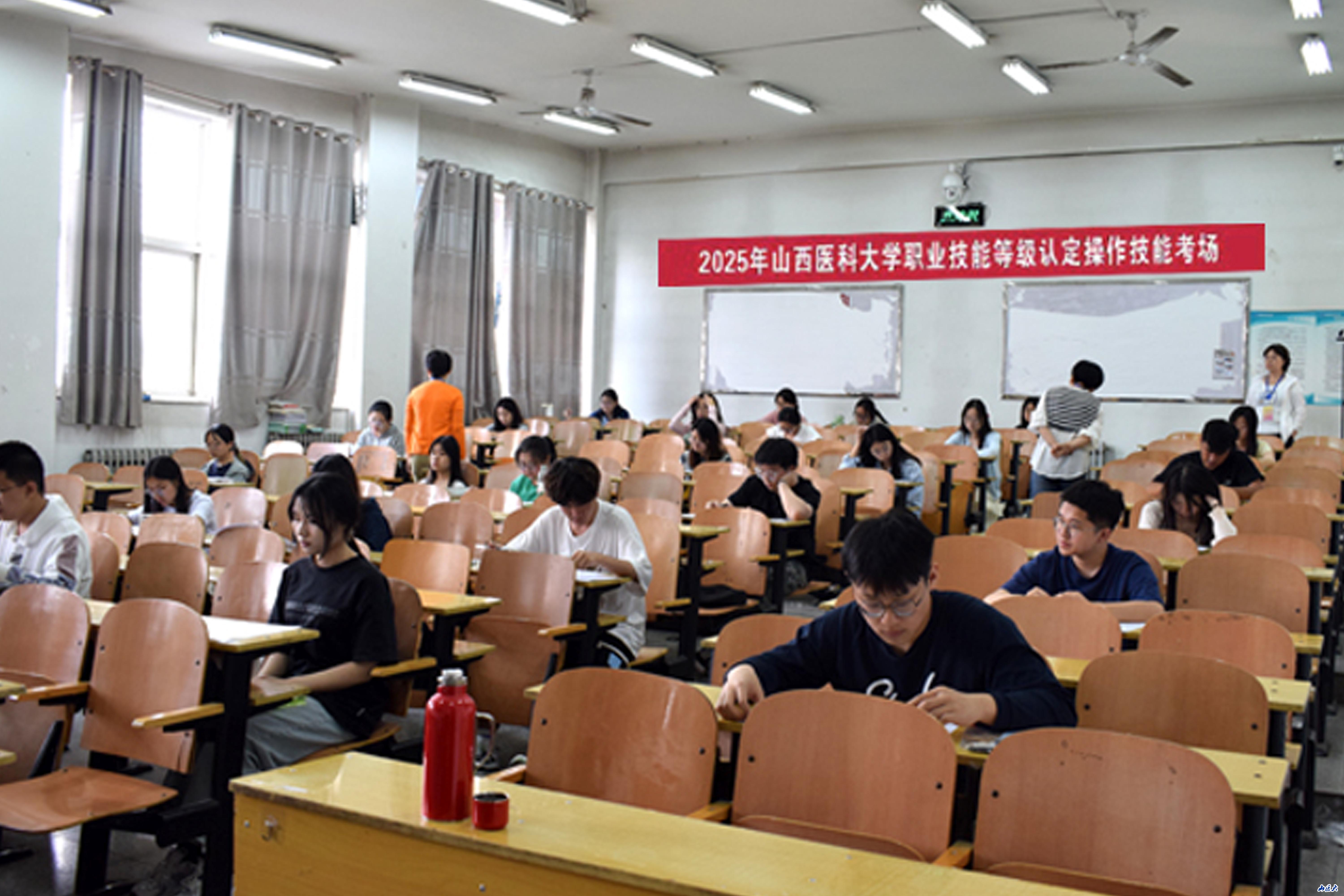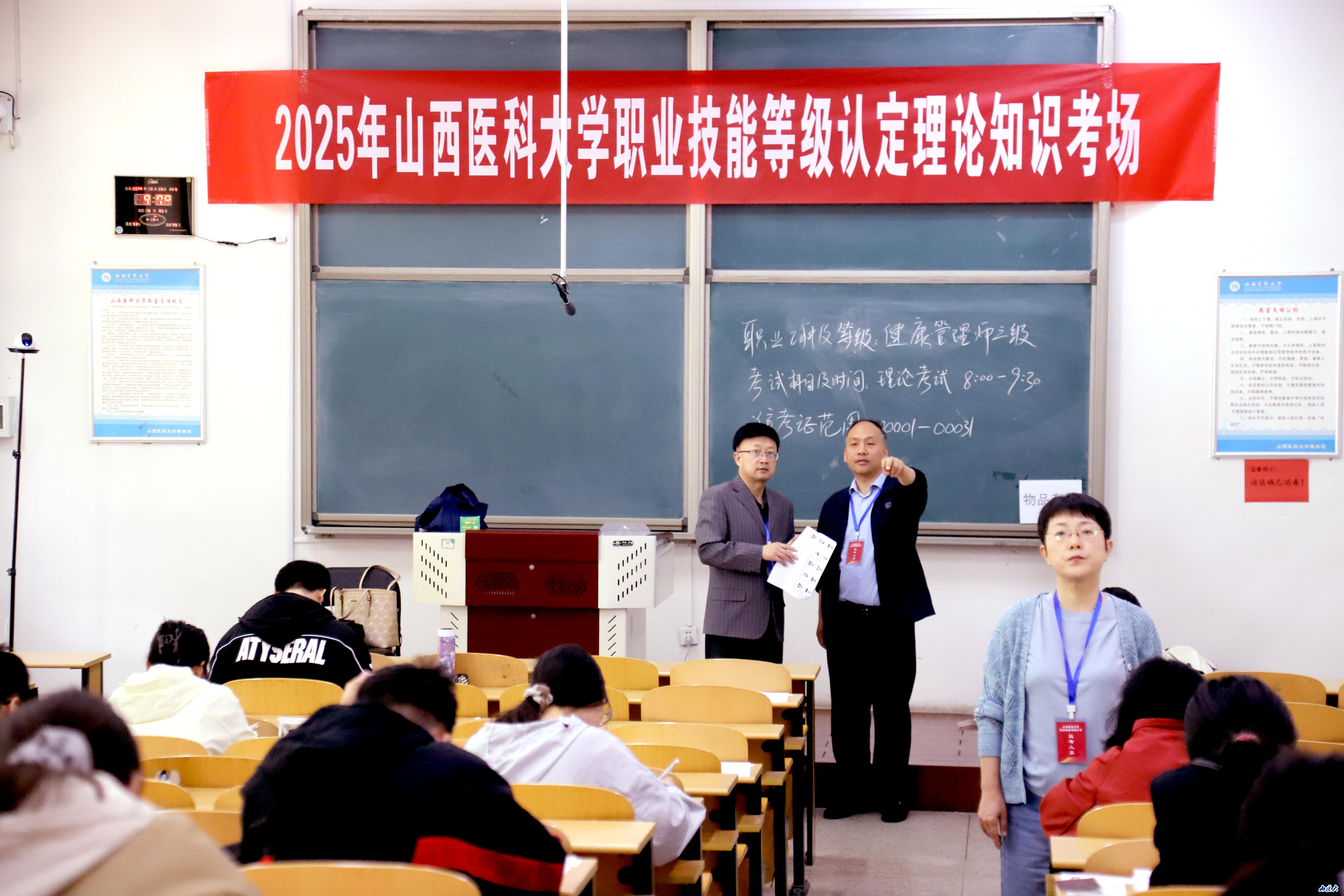 本次考试严格对标山西省《2025年职业技能提升工作方案》要求,面向临床医学、预防医学、护理学、药学等十个专业学生开展。这是落实《实施“技能照亮前程”培训行动 暨2025年职业技能提升工作方案》(晋人社厅发〔2025〕16号)的具体举措,通过将职业技能标准融入医学人才培养全过程,切实提升毕业生就业竞争力。在考试中,学校构建了"理论+实操+案例"三维评价体系,创新考评机制,严格考评程序,确保考评质量。为强化考务管理,所有考场均配备智能监控系统,理论及实操考核全程录像,严格遵循省方案中"每学时连续录像不低于10分钟"的技术规范,影像资料将保存3年备查。为确保考试公平公正,建立了"三审三查"工作机制:考前严格审查考生资格,核对学籍信息;考中实行"双考评员"制度,聘请21名三甲医院专家参与认定;考后实施成绩三级复核。所有考评资料将同步录入省职业技能培训实名制系统,实现全流程可追溯。山西省职业技能鉴定中心高度重视,派出专项督导组全程驻点巡视,通过现场巡查、资料抽检、座谈反馈等方式强化监督指导,确保本次考试的公正、顺利完成。