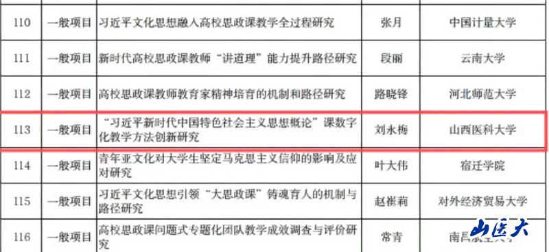 近日,全国哲学社会科学工作办公室公示了2024年度国家社会科学基金高校思想政治理论课研究专项立项名单,由我校马克思主义学院教师刘永梅主持的“‘习近平新时代中国特色社会主义思想概论’课数字化教学方法创新研究”获批一般项目。这是我校首次获批立项该类项目。