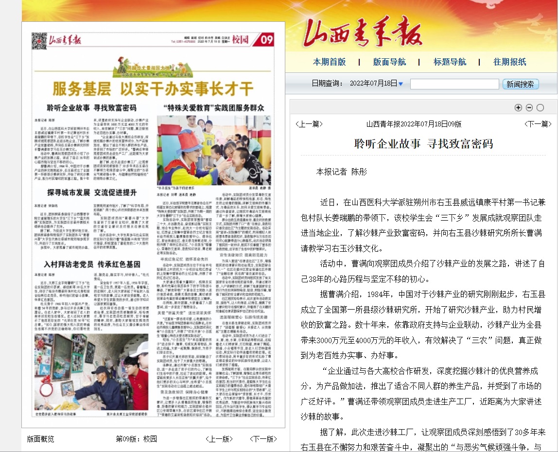 “企业通过与各大高校合作研发,深度挖掘沙棘汁的优良营养成分,为产品做加法,推出了适合不同人群的养生产品,并受到了市场的广泛好评。”曹满还带领观察团成员走进生产工厂,近距离为大家讲述沙棘的故事。