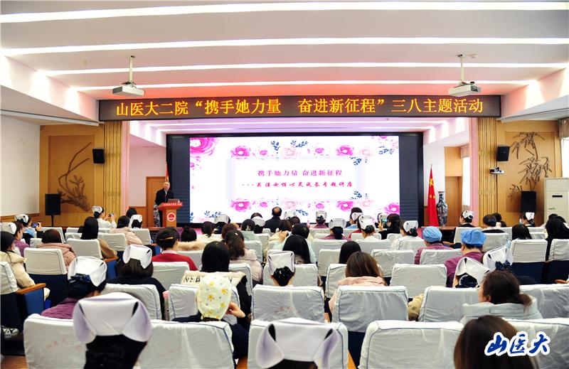 下午3:00,由第二医院工会组织举办的主题为“携手她力量 奋进新征程”的专题讲座在医院影像楼六层学术报告厅举行,院党委书记成晓龙,院党委副书记魏永红,院纪委书记王瑛出席,活动由院工会主席任建怡主持。