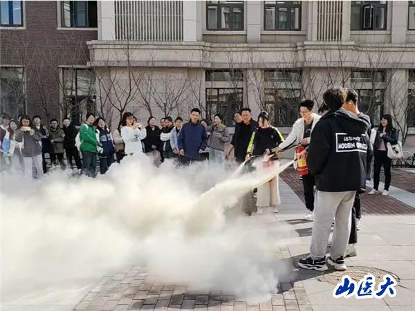 课堂培训结束后安排了消防演练。李学智和徐杰进行现场演示和指导,手把手教同学们正确使用灭火器。通过实际操作,同学们都掌握灭火器的操作要领和注意事项,提高初期火灾扑救的能力。
