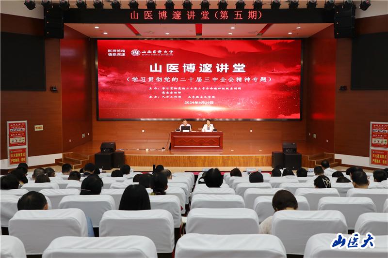 8月29日,我校学习贯彻党的二十届三中全会精神校级宣讲团举办新学期首场理论专家宣讲报告会。北京师范大学马克思主义制度理论研究中心主任、马克思主义学院教授、博士生导师徐斌莅临“山医博邃讲堂”作学习贯彻党的二十届三中全会精神宣讲报告。全体校领导,一二院班子成员,全校处级干部、省纪委监委驻校纪检监察组全体干部,思政课教师、思想政治辅导员、专职组织员、分团委书记和学生党员代表等现场聆听了讲座。